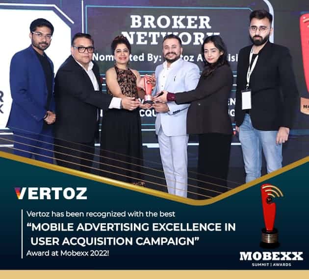 Mobexx has recently honored Vertoz Advertising with the “Mobile Advertising Excellence in User Acquisition Campaign” award, for their unique campaign designed for their client Broker Network. An expansive promotional campaign was created & executed to effectively reach Broker Network’s target audience and enhance their brand awareness. The campaign was a success thanks to Vertoz’s two-fold approach of Digital plus Out Of Home media solutions.